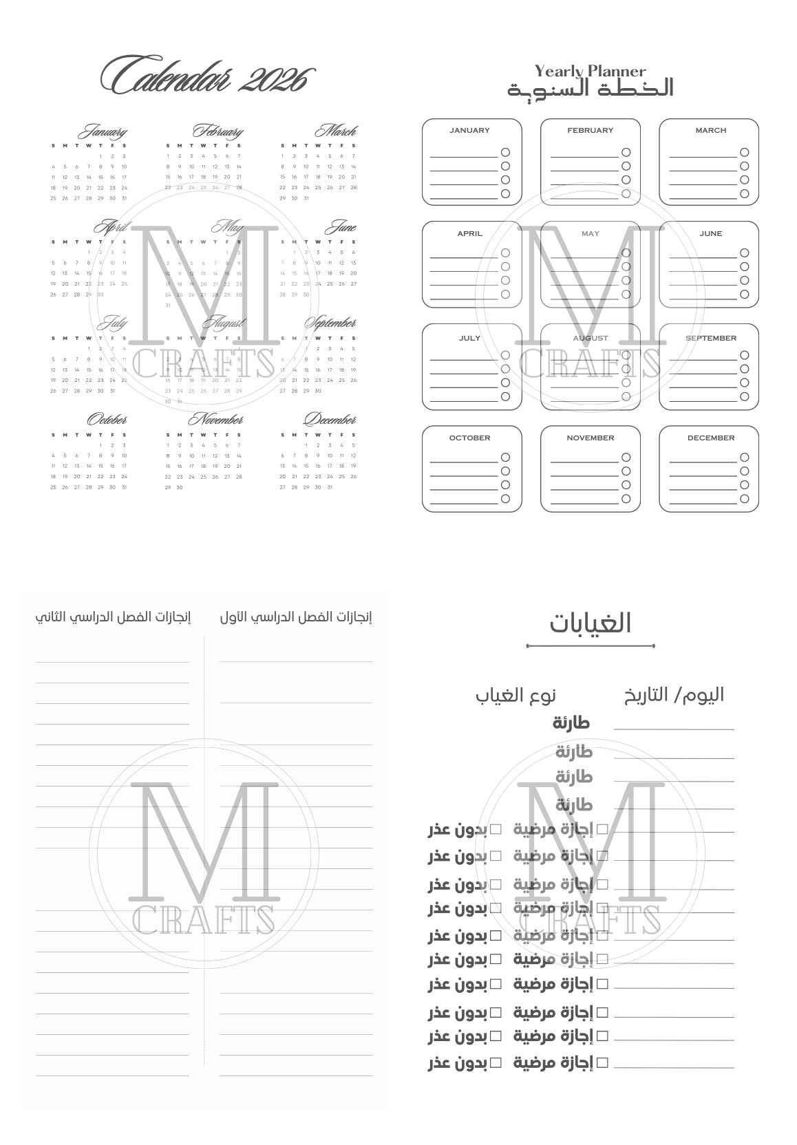 سجل تحضير+تقسيمات A4 فقط
