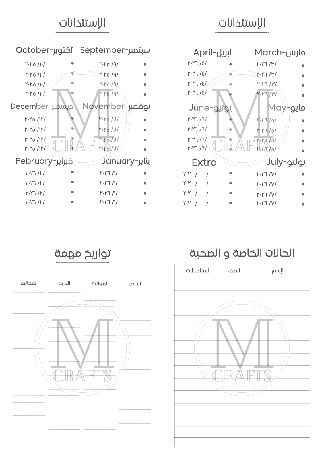 -تسجيل التواريخ المهمة